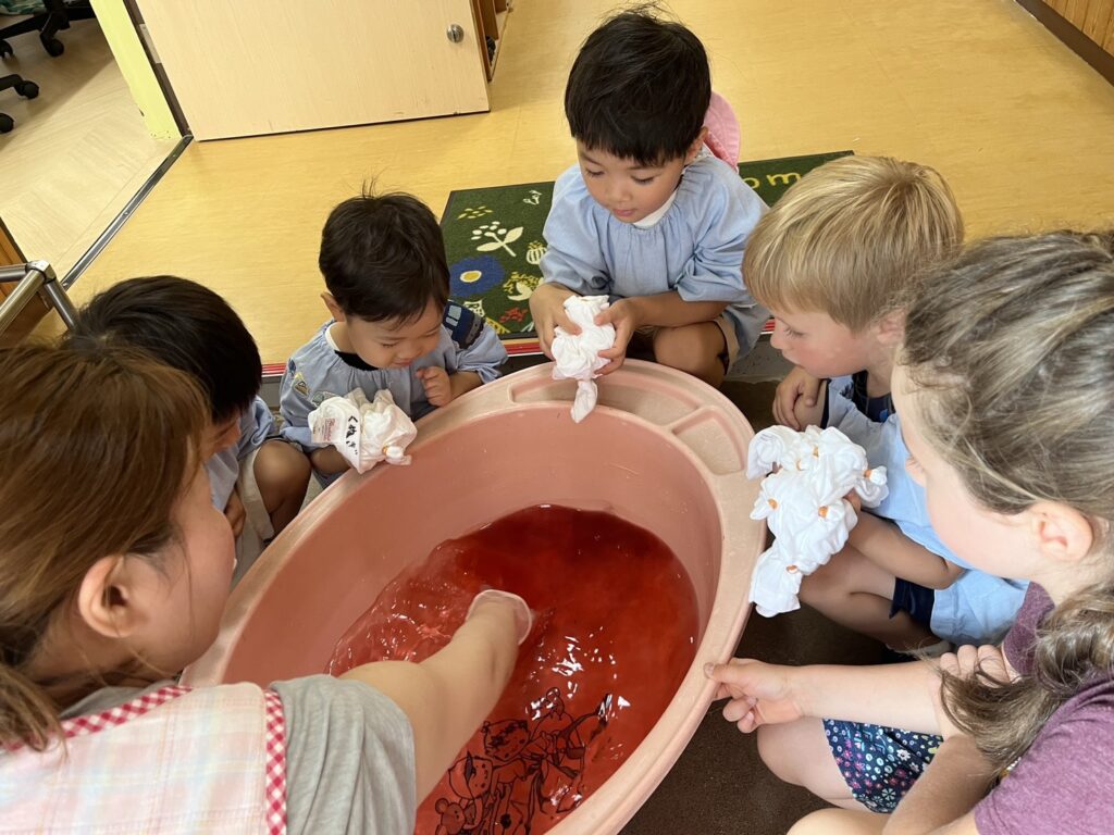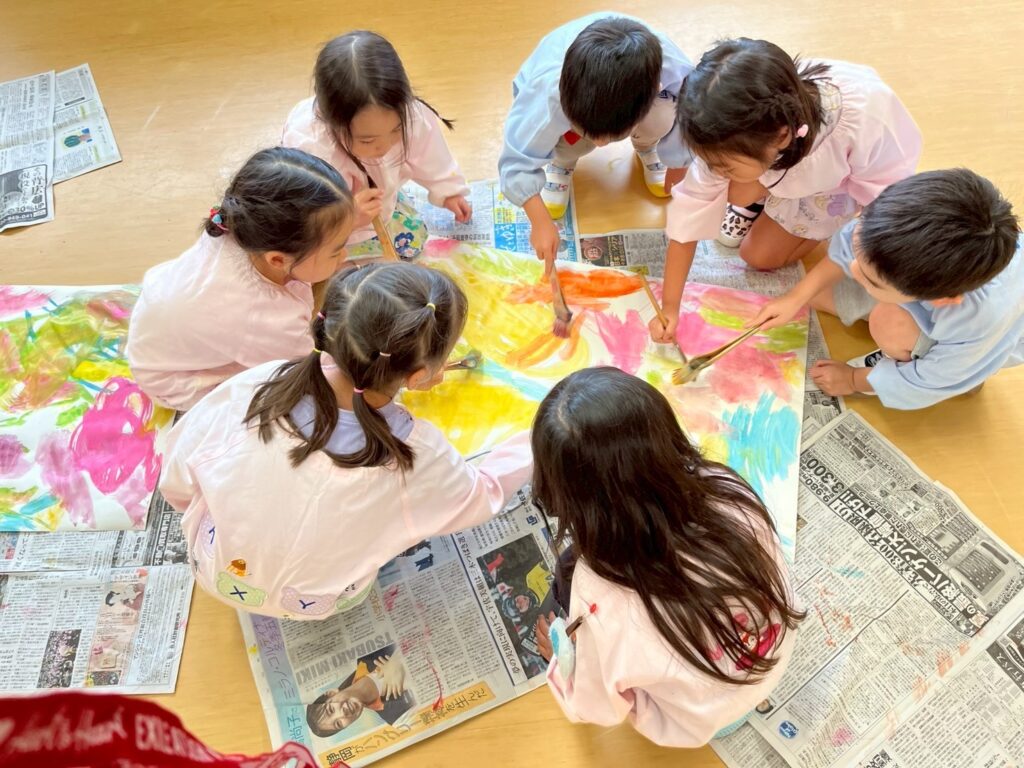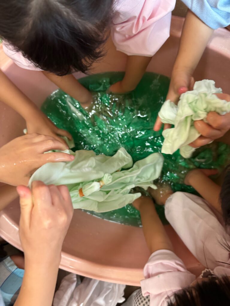 まだまだ暑かった9月には、運動会で身につけるクラスカラーのTシャツを作ったね。