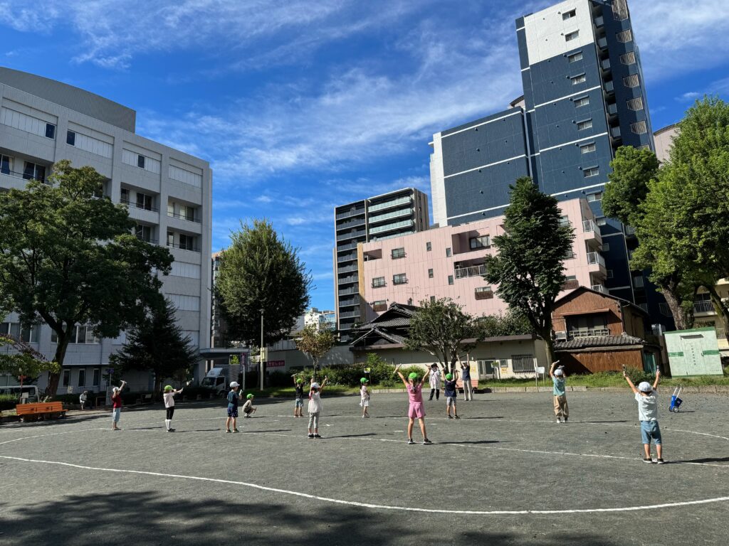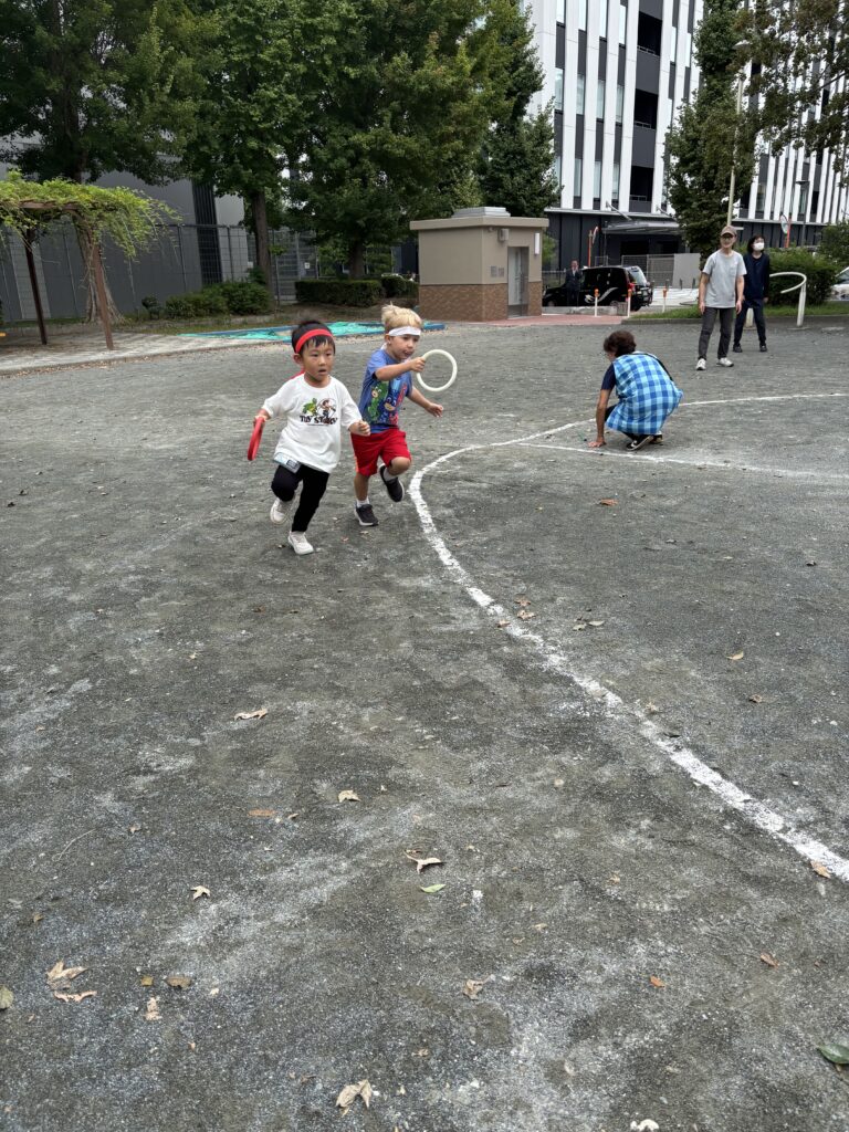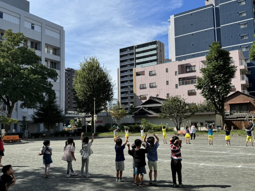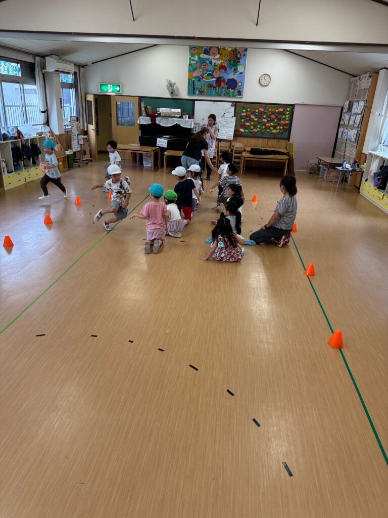 晴れた日には公園へ出かけ、雨の日には園舎の2階で練習。