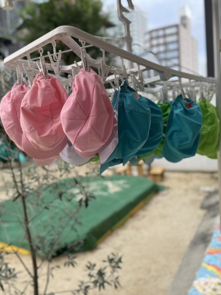さあ、みんなの汗がいっぱいしみた帽子は、先生たちがお洗濯をして、明日みんなに被ってもらえることを楽しみに待っています🧢