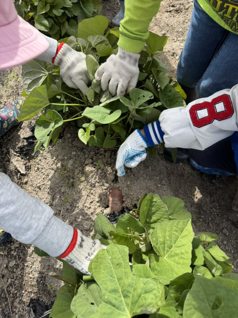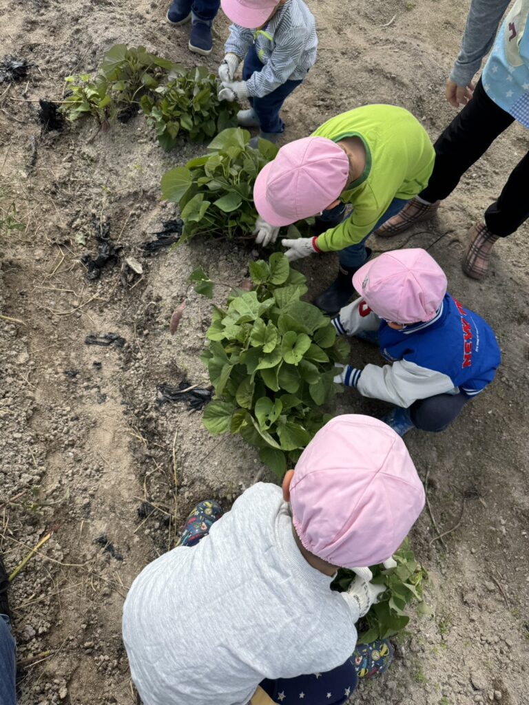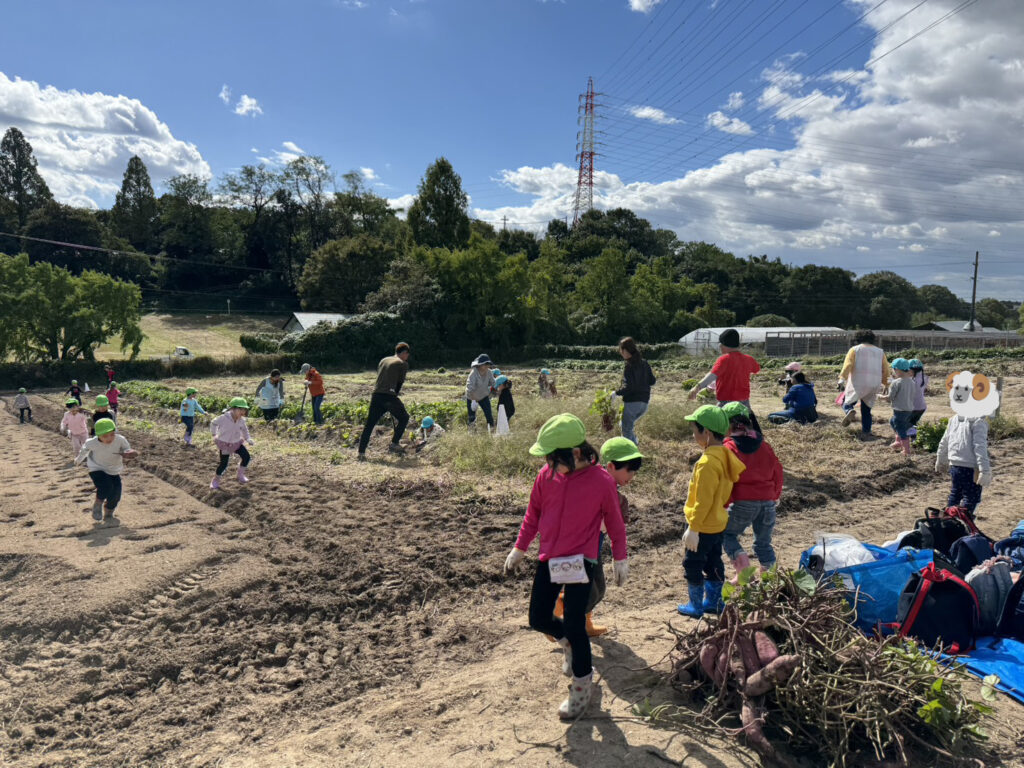 さて、牧場でのおいもほりでは、クラスごとに集まり、軍手をつけた小さな手で、力いっぱい土を掘り、とってもたくさんのおいもを見つけました🍠🍠お土産いっぱいになったよー‼️
